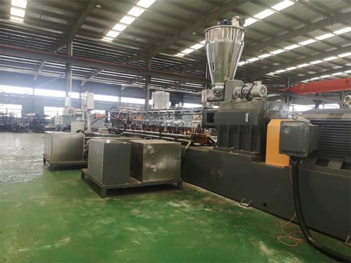 別表示兩種不同規(guī)格的捏合塊。三螺桿造粒機(jī)(2) 物料熔融所需熱量來自外部加熱和剪切熱 , 在適當(dāng)?shù)牡胤脚渲媚蠛蠅K來加強(qiáng)剪切以促進(jìn)熔融 , 可取得很好的效果。即將第一組用于促進(jìn)熔融的捏合塊放在熔融區(qū)的后部 , 見圖。此時物料已接近完全熔融 ,一旦遇到捏合塊 , 將立刻全部熔融。在一定區(qū)域內(nèi)調(diào)整捏合塊位置 , 可以控制熔融的結(jié)束點(diǎn)。但一定要注意的是 , 如果該組捏合塊過于靠近加料口 , 則會導(dǎo)致堵料和螺桿所受扭矩增大的后果 , 這是必須避免的。圖和 (b) 兩圖間的箭頭所指處是兩根螺三螺桿造粒機(jī)桿的區(qū)別所在。由此可見 , 圖4 (b)所示的螺桿應(yīng)是螺桿組合的基本形式。但需要指出的是 , 該圖僅僅說明了組合原則 , 并沒有考慮特定擠出過程的具體情況。同向雙螺桿擠出技術(shù)在我國已有數(shù)十年的研制開發(fā)歷史 , 應(yīng)用也越來越廣泛 , 但是人們對雙螺桿擠出過程的認(rèn)識仍不夠深入 , 相關(guān)的基礎(chǔ)研究也滯后于應(yīng)用。雙螺桿較為復(fù)雜的運(yùn)動關(guān)系和幾何關(guān)系造成人們對雙螺桿擠出過程定性和定量描述的困難 , 但對其研究始終沒有間斷。因此 , 深入了解雙螺桿擠出過程 , 不斷地針對生產(chǎn)實際遇到的問題進(jìn)行理論分析和總結(jié) , 逐漸建立起在可靠的試驗基礎(chǔ)物料物性參數(shù)及螺桿轉(zhuǎn)速不變的條件下,要改變擠出機(jī)產(chǎn)量,實際上必須改變產(chǎn)量/k三螺桿造粒機(jī)停留時間分布(螺桿轉(zhuǎn)速為60 r/min)產(chǎn)量/kg·h- 1:1— 20 2— 10 3— 5螺紋元件入口及出口的壓力差值,這可以通過調(diào)節(jié)機(jī)頭壓力達(dá)到。圖6、7、8嚙合同向雙螺桿擠出機(jī)螺紋元件三維流場分析 分析利用ANSYS軟件求出的結(jié)果為速度場和壓力場。另外,筆者利用C語言編寫了計算流量、回流量、剪切速率、拉伸速率和剪切應(yīng)力的后處理程序來分析螺紋流道的流量和混合特性。對螺紋流道任意橫截面內(nèi)的軸向速度進(jìn)行積分,可求得流量為:Q= VZds (4)混合性能分析是流場分析三螺桿造粒機(jī)的主要內(nèi)容之一?;旌习ǚ稚⑿曰旌虾头植夹曰旌?。一般來說,分布性混合用回流量來判斷,回流量即對在任意橫截面內(nèi)為負(fù)值的軸向速度進(jìn)行積分,即:Qback= Vbackds (5)在聚合物成型加工中存在著兩類基本流動:其一稱為剪切流動,另一稱為拉伸或伸長流動。剪切流動一般用剪切速率的值來標(biāo)識,剪切速率的值是一個標(biāo)量,各單元剪切速率的值按如下公式計算[6]:以往的計算中,一般只求出剪切速率,很少研究(或無法求出)拉伸速率