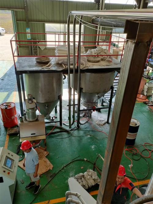 2 除塵器1只,直徑600,直端400高,內(nèi)有9只400長(zhǎng)特殊濾芯,配有脈沖噴吹,油水分離器。配有觀察窗方便檢查更換濾芯。全部3mm不銹鋼拉絲板制作。自動(dòng)稱重配料系統(tǒng)