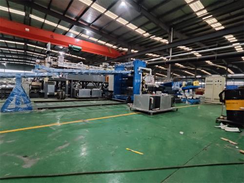 一、系統(tǒng)機組技術(shù)參數(shù)Ⅰ、機器顏色:主機為:公司標(biāo)色;電柜為:電腦色;防護罩:黃色Ⅱ、擠出工藝:110升混煉機-——自動提升機——強制喂料機——150單螺桿擠出機——液壓板式換網(wǎng)系統(tǒng)-----片材擠出模具----三輥壓光---三輥冷卻系統(tǒng)-----下覆膜裝置----托架冷卻-----冷卻牽引----切邊裝置-----計米器-----在線剪板機----輸送帶-----摩擦收卷機----主機采用:PLC控制Ⅲ、加工物料:EVA.EPDM.POE隔音氈 敲擊隔音片代加工 要 求:制品寬度:1000mm 敲擊隔音片代加工制品厚度:1-4mm產(chǎn) 能:700~1000公斤/小時注意事項:取決于客戶的配方、工藝、