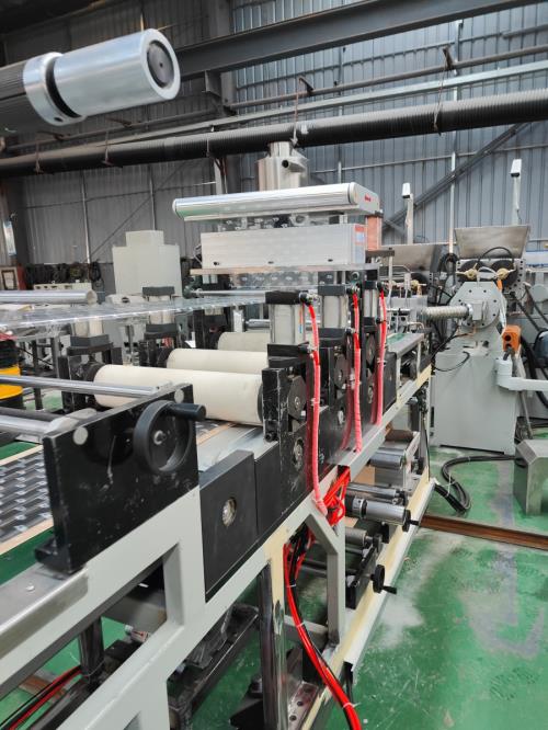智能化與高精度是該生產(chǎn)線的核心競(jìng)爭(zhēng)力。設(shè)備集成PLC控制系統(tǒng),可實(shí)時(shí)監(jiān)測(cè)溫度、壓力、速度等關(guān)鍵參數(shù),實(shí)現(xiàn)膠量精準(zhǔn)控制與涂膠軌跡優(yōu)化,確保膠片厚度均勻性與尺寸精度。強(qiáng)制喂料機(jī)與雙螺桿擠出結(jié)構(gòu)的科學(xué)搭配,讓丁基膠原料混煉充分,物理化學(xué)性能穩(wěn)定,滿足輪胎氣密層、光伏組件密封、建筑防水等多場(chǎng)景的嚴(yán)苛要求。生產(chǎn)線產(chǎn)能可達(dá)100-150公斤/小時(shí),適配寬8mm、厚0.6mm等多種規(guī)格產(chǎn)品,實(shí)現(xiàn)一出5條的高效生產(chǎn)。